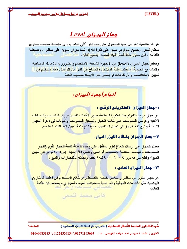تحميل ملف Pdf يشرح جهاز الميزان Level من الالف الى الياء