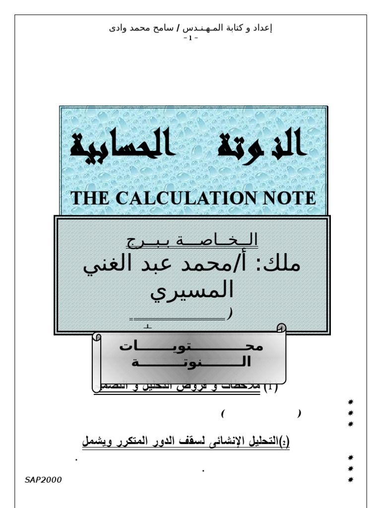 نوته الحسابية لمبني سكني Pdf How To Make Calculation Sheets For Buildings