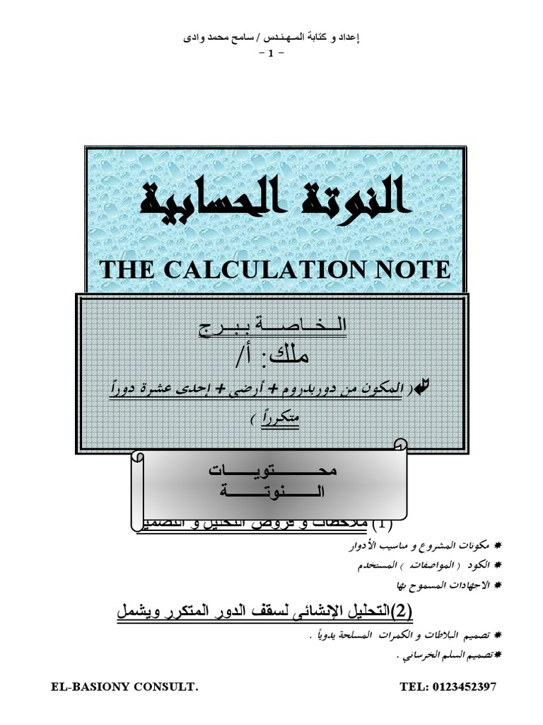 نوته الحسابية لمبني سكني Pdf How To Make Calculation Sheets For Buildings