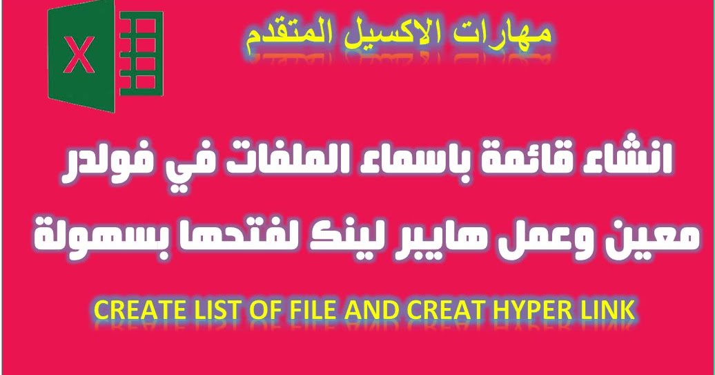اكسيل Vba انشاء قائمة باسماء المفات الموجودة داخل فولدر معين وعمل هايبر لينك لفتحها Create List File And Create Hyper Link