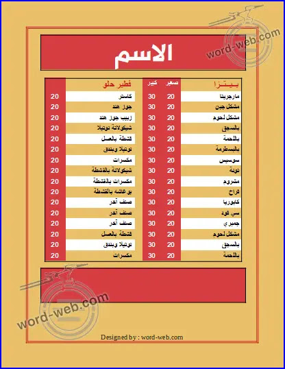 تصميم منيو جاهز للتعديل Word Psd فارغ قائمة مطعم كافيه قابلة للكتابة Doc مجاني للطباعة