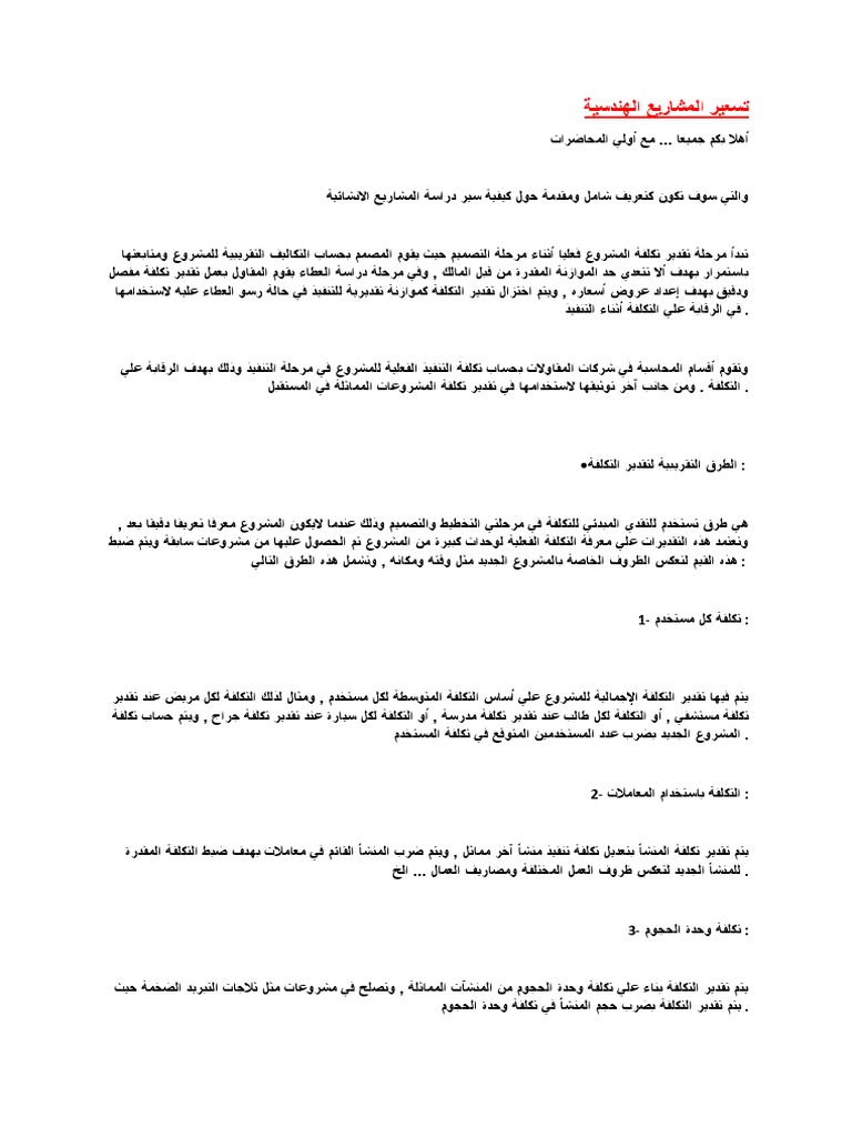 شبكة المهندس تسعير المشاريع الهندسية