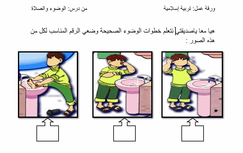 ورقة عمل كيفية الوضوء
