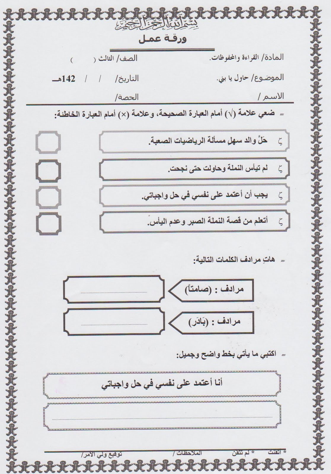 عربي أوراق عمل إثرائية لدرس أحب أن الصف الثالث 2020 Facebook