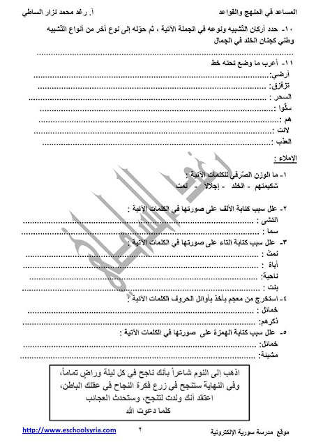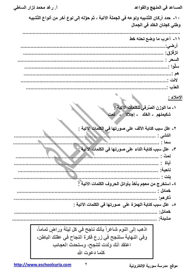 المنهاج السوري نماذج عمل في قصيدة احب وطني الصف الثامن Facebook