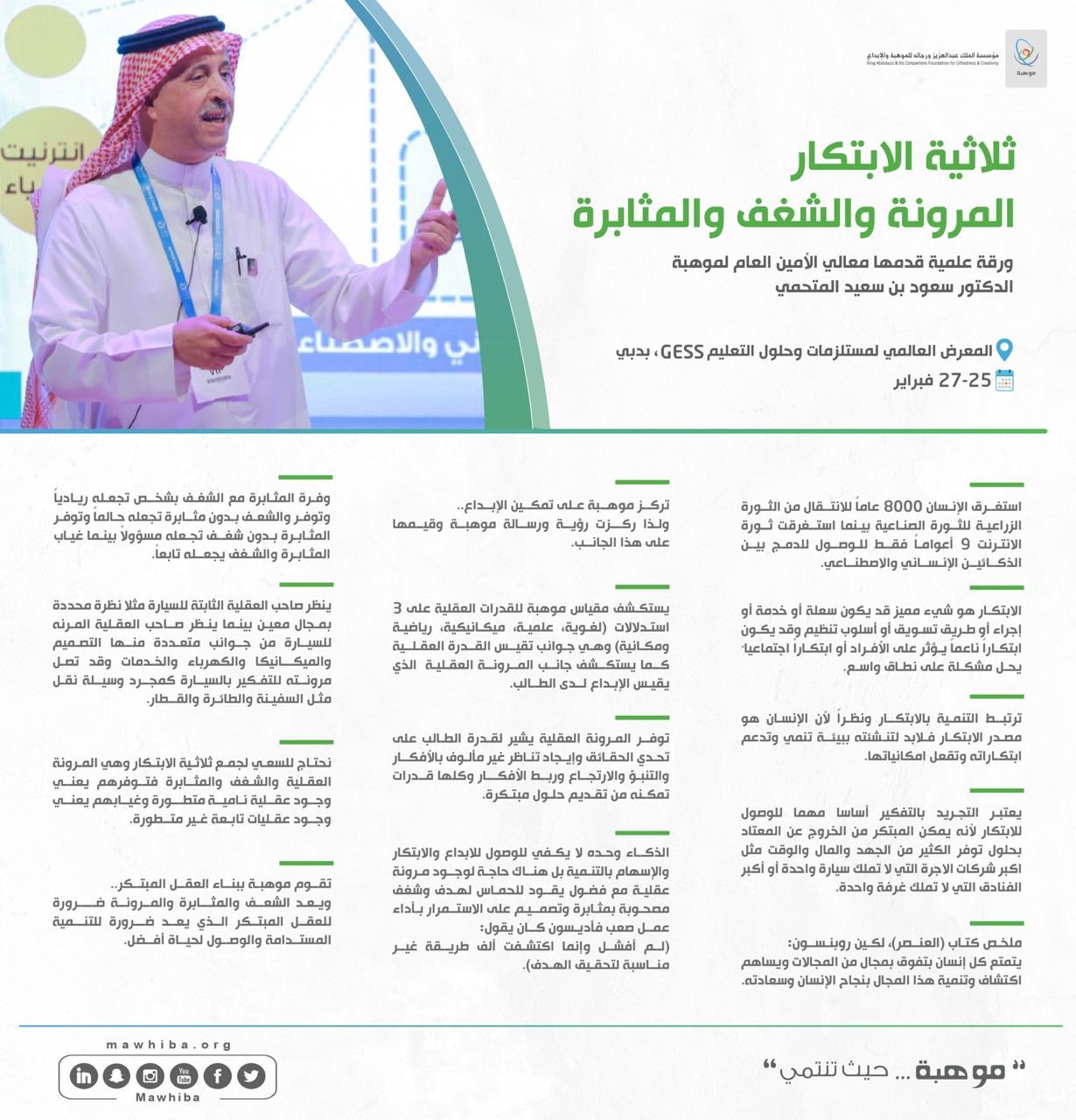موهبة On Twitter ثلاثية الابتكار المرونة و الشغف و المثابرة أبرز ماتطرق له معالي الدكتور سعود المتحمي الأمين العام لـ موهبة في ورقة العمل المقدمة بالمنتدى والمعرض العالمي لمستلزمات وحلول التعليم Gessdubai