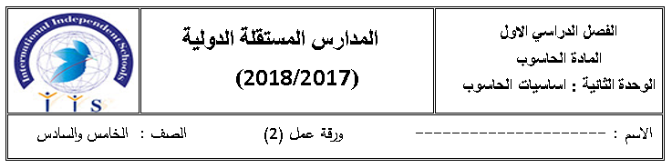 I I S Computer أساسيات الحاسوب ورقة عمل 2