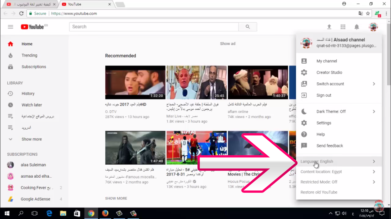 شرح كيفية تغيير لغة اليوتيوب الى اللغة العربية